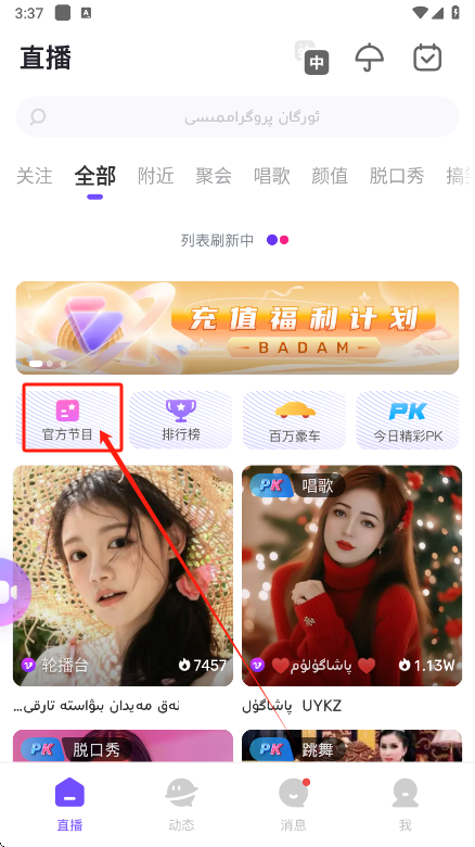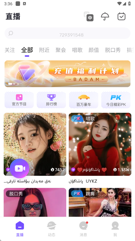 Badamlive作为一款专为维吾尔族用户量身定制的本地化直播平台,为用户带来了丰富多彩的直播体验。在这里,用户不仅可以尽情观看各类精彩直播内容,还能轻松开启自己的直播间,展示个人才艺,享受互动的乐趣。平台提供全面的直播功能与卓越的互动体验,让每位用户都能找到属于自己的舞台,尽情展现个人魅力。