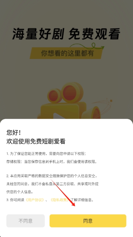 1、在本站轻松下载免费短剧爱看app,打开后同意用户协议即可进入