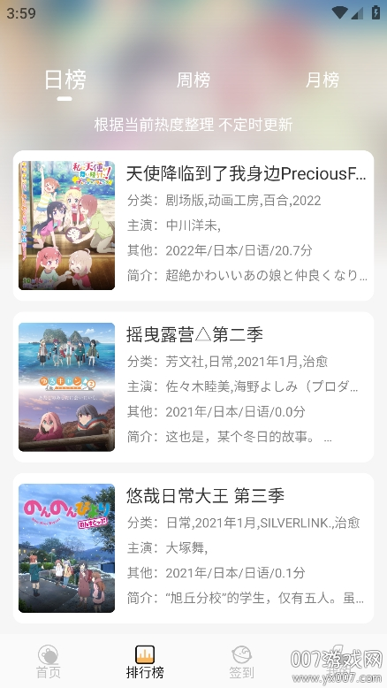 7、软件内还设有各类排行榜,助你快速掌握热门动漫动态。