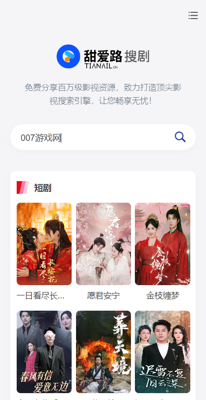 1、首先,你需要在007游戏网下载并安装甜爱路搜剧,然后打开软件。