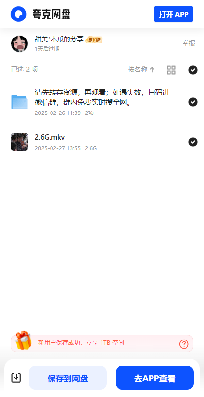 3、搜索到资源后,你可以自由选择不同的链接进行观看。建议将资源保存到本地后再观看,以获得更好的体验。