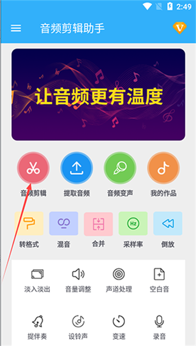 1.在软件的主界面,点击进入【音频剪辑】功能。