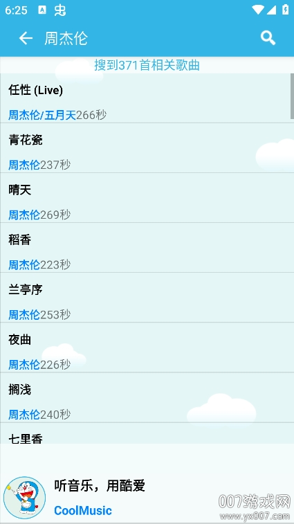 4、通过顶部搜索框输入关键词,可实现毫秒级音乐检索