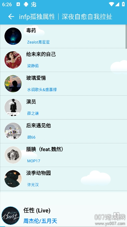 2、点击心仪歌单即可展开包含数十首精品音乐的详细列表