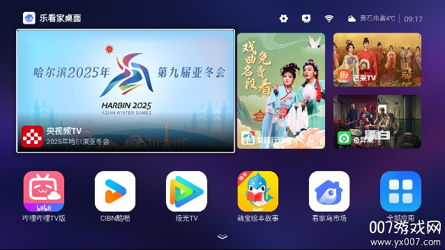 乐看家桌面是专为智能电视和安卓电视盒子量身定制的桌面软件,致力于为用户带来更便捷、舒适且个性化的家庭娱乐体验。其界面设计简洁纯净,无广告干扰,老人和小孩也能轻松自主操作电视,找到想看的节目或应用。软件具备快速开机响应功能,能让用户迅速进入使用状态。它还允许用户自由调整桌面布局,像图标位置、大小等都能随意设置,满足个性化使用需求。用户可依据自身喜好和需求,自由组合排列桌面元素,打造专属电视桌面。此外,软件内置一键清理功能,能快速清理设备运行时的缓存文件,降低设备运行负载,提升系统流畅度。同时,提供多套桌面UI供用户选择,每套UI风格和色彩搭配独特,满足不同用户的审美需求。