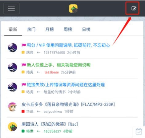 想要上传自己的音乐作品到HiFiNi音乐磁场app吗?只需点击软件界面右上角的编辑按钮,即可开始上传之旅。