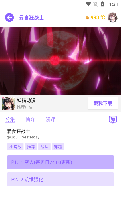 2、视频内容免费播放与下载,无需充值VIP,即可拥有海量动漫资源;