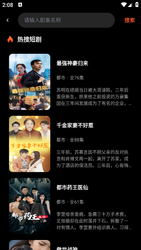 3、支持点击上方的搜索框,快速搜索你喜欢的短剧资源。