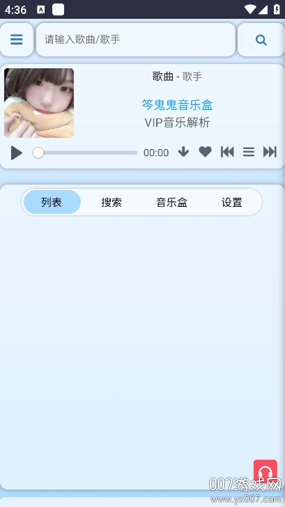 笒鬼鬼音乐盒APP是一款开源的音乐播放工具,它为用户提供了丰富的音乐资源,涵盖多种类型的歌单供用户自由选择。其界面设计简洁明了,操作便捷,让用户能够轻松享受听歌的乐趣,实现真正的听歌自由。喜欢音乐的朋友们,赶快下载体验吧!