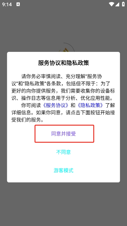 2、安装完成后进入软件,仔细阅读并同意傣族基地音乐app的用户协议。