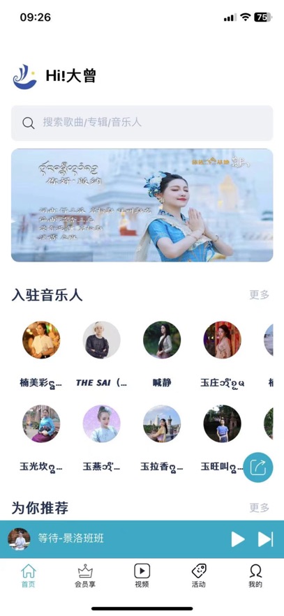3、进入首页后,你就能获取到相关服务了,在这里你可以了解到平台入驻的音乐人信息。