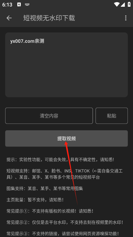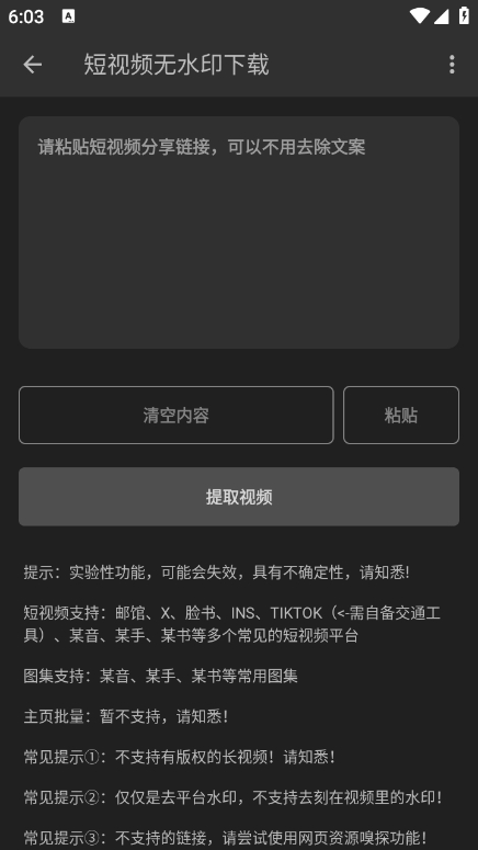以无水印下载功能为例,进入该功能后,复制短视频链接。