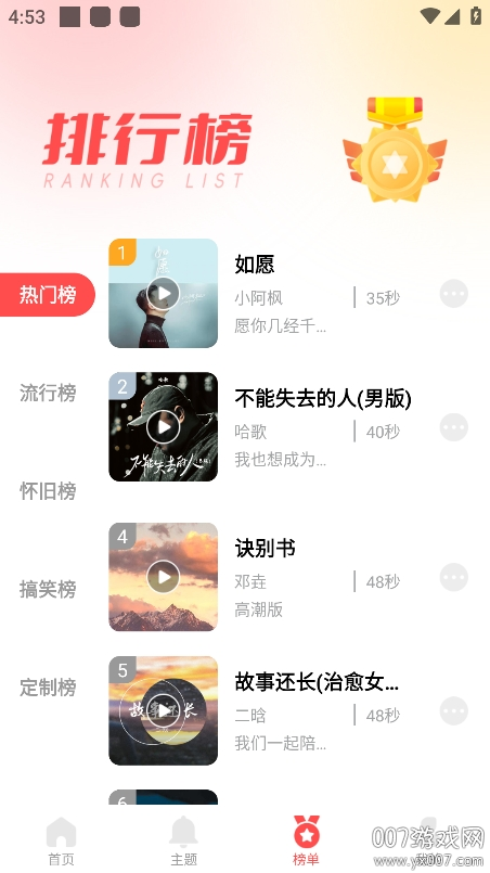 4、软件还精心准备了多种排行榜,供用户深入了解铃声详情