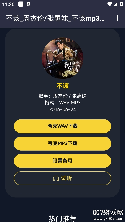 3、选定音乐后,可看到多种下载方式,满足不同用户的需求