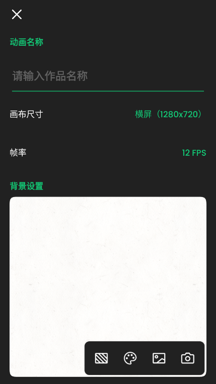 3、进入创建页面后,填写相关名称、尺寸、帧数等信息,点击"创建动画"。