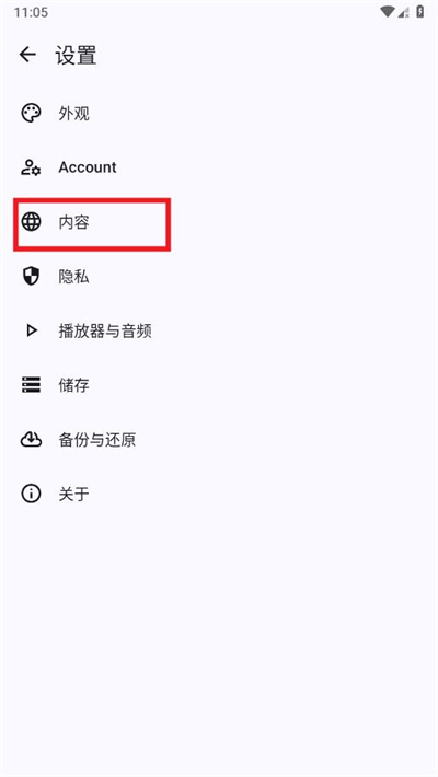 2.在设置界面中,找到并点击【内容】选项,进入内容设置页面。