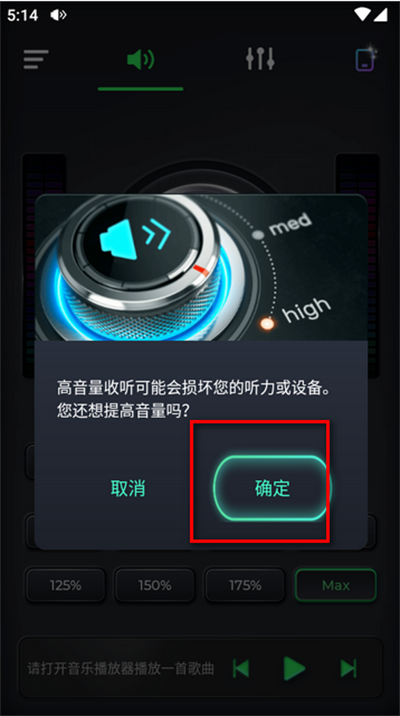选择max时,系统会给出提示,请谨慎操作,以免音量过大造成不适。