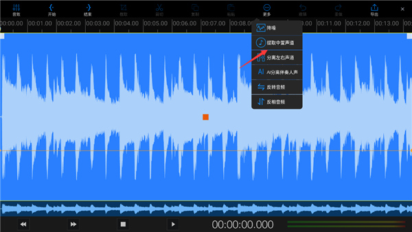 4)在菜单栏中选择“更多”,并点击“提取中置声道”选项。