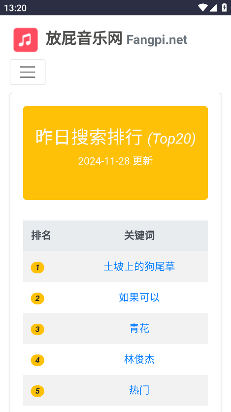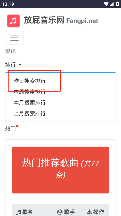 3、在昨日搜索排行中,您可以浏览到热门搜索歌曲列表。