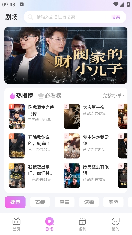 进入剧场板块,这里有各种类型的短剧供您选择。