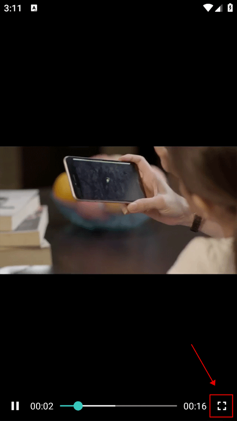 1、在视频播放界面中,点击屏幕会显示进度条,此时我们点击进度条最右侧的方框。