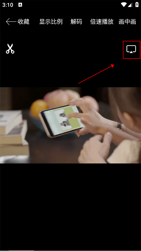 3、进入播放界面后,点击视频右上角的投屏图标。