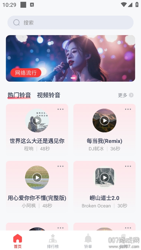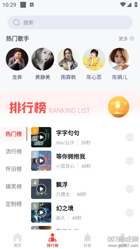 4、软件还设有多种排行榜,帮助用户了解当前最受欢迎的铃声。