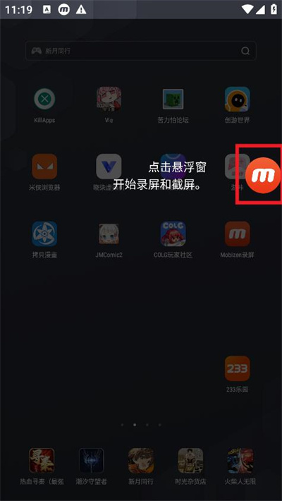 1.点击屏幕右侧的悬浮窗,即可开启录屏和截屏功能。