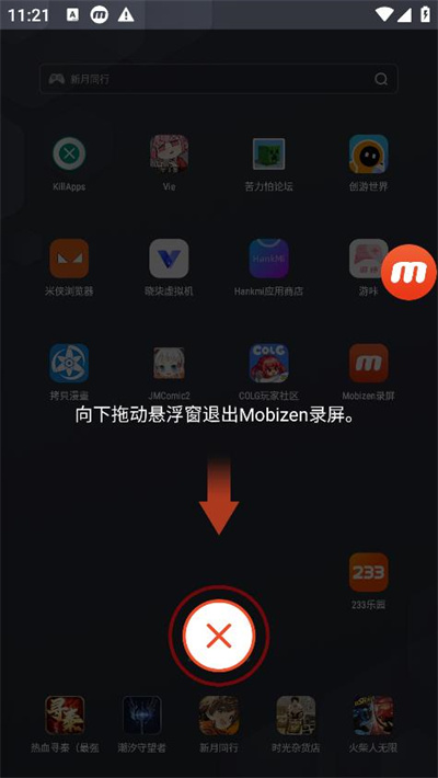 3.录屏结束后,将悬浮窗拖动到下方的【X】位置,即可轻松退出软件。