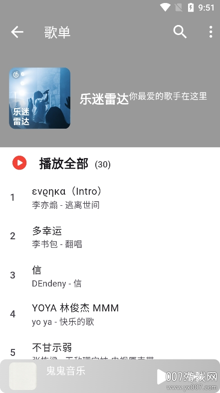 3、只需轻触心仪的歌单,即可沉浸在同类型音乐的海洋中。