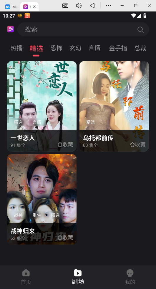 3.APP设有精选、恐怖、玄幻、言情等多个栏目,方便用户快速找到感兴趣的剧集。
