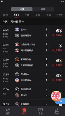 1、赛事查询便捷,切换至赛事中心即可查看赛事预告列表。