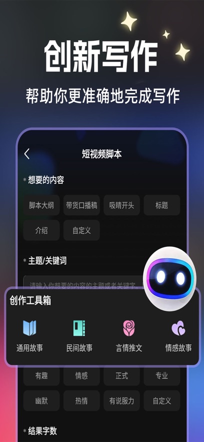 2.你可以选择亲自撰写脚本大纲,或者简单输入需求,让软件为你智能创作