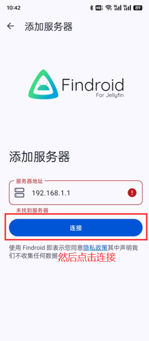 3. 添加完成后,点击连接即可开始使用Findroid。