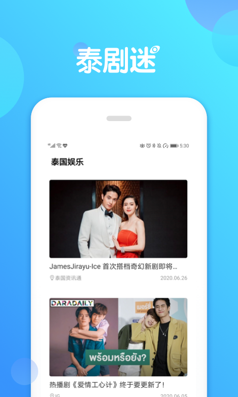 泰剧迷app作为一款专为泰剧迷量身定制的追剧神器,汇聚了最新最全的泰剧资源,每日实时更新,让剧迷们第一时间掌握泰剧动态。同时,它还提供丰富的泰国娱乐新闻资讯,代播新剧预告一网打尽,成为泰剧爱好者交流互动的热门平台。
