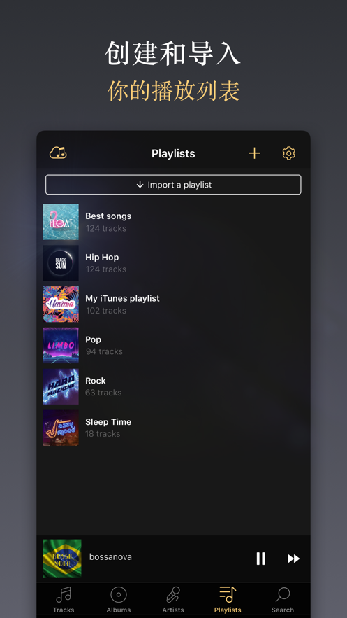 - 播放列表灵活管理:导入iTunes播放列表或直接在Equalizer+上创建新列表
