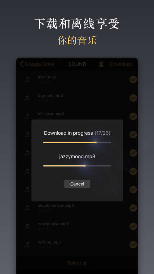 - 离线模式畅享:无需网络或WiFi,随时随地聆听音乐