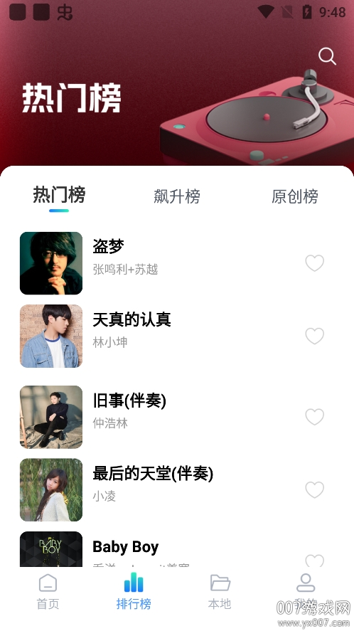 3、为用户提供实时更新的音乐榜单,包括但不限于热歌排行等各类榜单。
