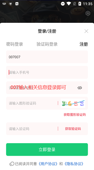 2. 进入软件后,点击“我的”,选择注册登录。