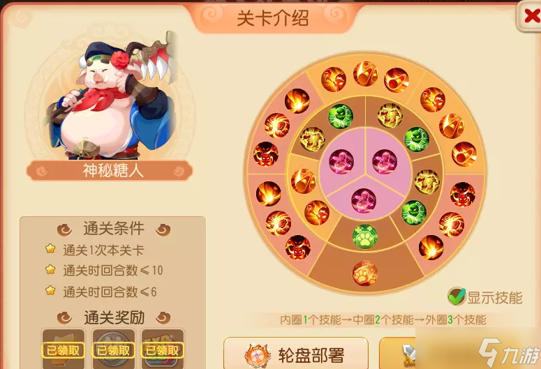 培养各种糖人调整轮盘技能,根据关卡特性选择糖人和技能。