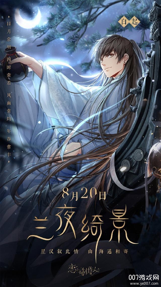 1、8月20日至8月29日,七夕情人节副本即将开启。恋与制作人七夕高清壁纸抢先看,图片唯美大气,快来选择你心仪的小哥哥,还有情侣照等你来拿,让人羡慕不已;