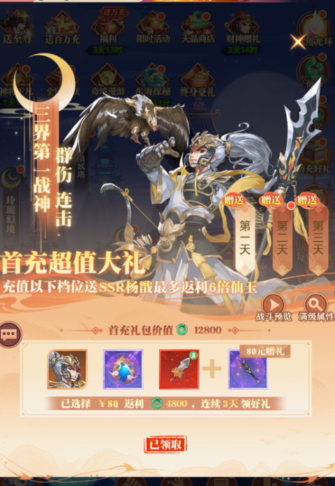 封神榜:提升封神榜等级,为所有神将提供巨额属性加成。