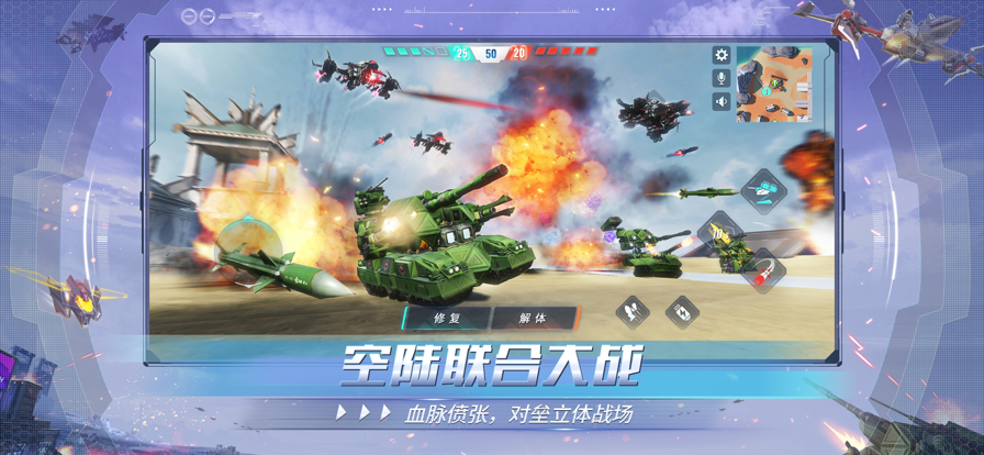 《重装上阵》是网易首款创造性实时竞技手游,它融合了自由创造与多人联机对战的沙盒乐趣。在这里,你可以发挥无尽想象,组合上百种模块,打造出独一无二的战斗机械。驾驶你的战车,穿越环形山口,翱翔于宇宙星空,开启一场精彩绝伦的太空冒险之旅!「科幻背景」 风暴席卷,文明的辉煌瞬间崩塌,星海陷入了长达千年的黑暗。然而,黎明终将到来,战争也随之拉开序幕。前进吧,宇宙的孩子们,不要将审判的权力拱手让给敌人。前进吧,星河的勇士们,为了荣耀而战!