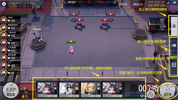 玩家战场上的英灵数量是由当前人口决定的。左下角显示了当前的人口上限和经验情况,下方经验条满后人口上限会自动增加1个。玩家可以花费四个金币来加速人口的升级进程,每次点击将增加4点经验值。
