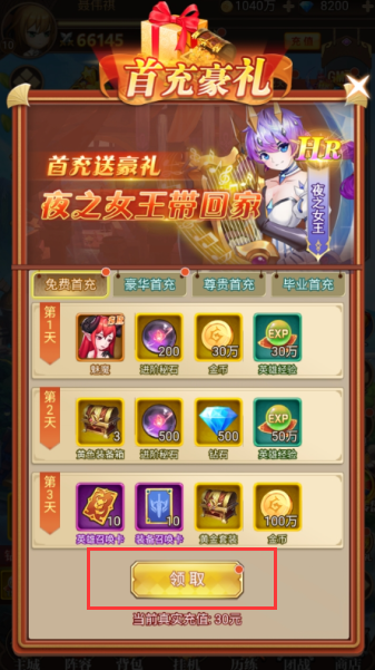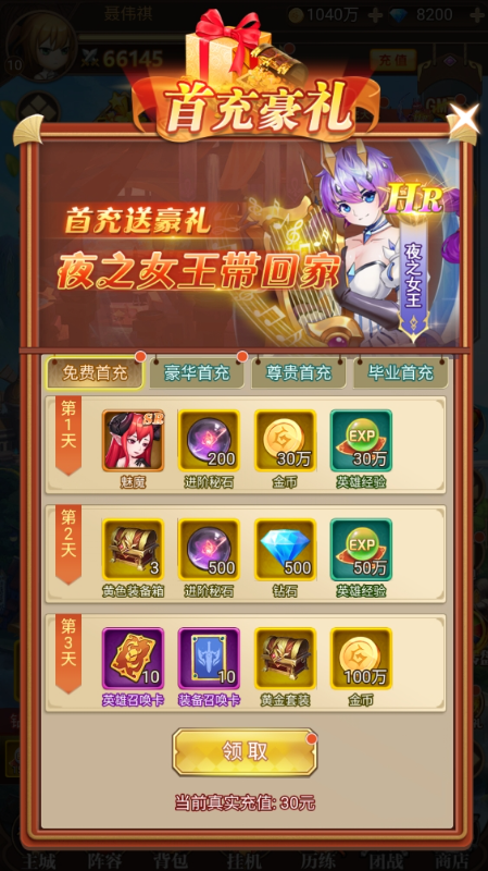 ★福利②:开局即送全局跳过、满级VIP、10000元真充卡、定制钥匙*1、进阶秘石*30000;