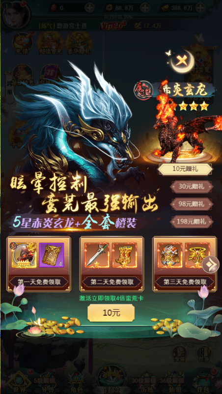 ★上线即享福利:VIP20、毕业称号*1、海量福利卡*1、高级异兽蛋*100、豪华礼包、元宝*388w等你来拿