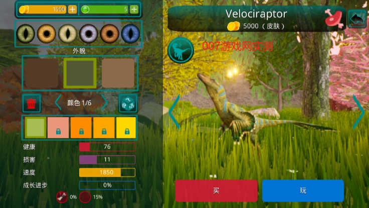 2. 首先,玩家要从众多恐龙中选择一只作为自己的伙伴。记住,这是属于你的恐龙!在恐龙游戏中,不仅有食肉恐龙和食草恐龙,还有飞行恐龙,比如翼手龙。玩家可以与自己物种的食肉动物团结起来,共同抵抗其他物种,最重要的是要生存下去!