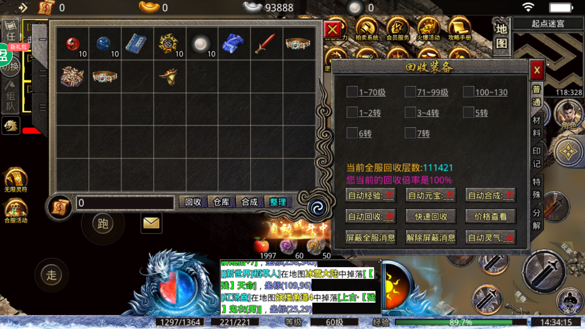 3、游戏还拥有宏伟壮观的全民攻沙、沙城野战、野外原始PK、一键回收、烈焰套装、破晓唤龙、酷炫特效等全新升级经典玩法,让玩家沉浸其中。