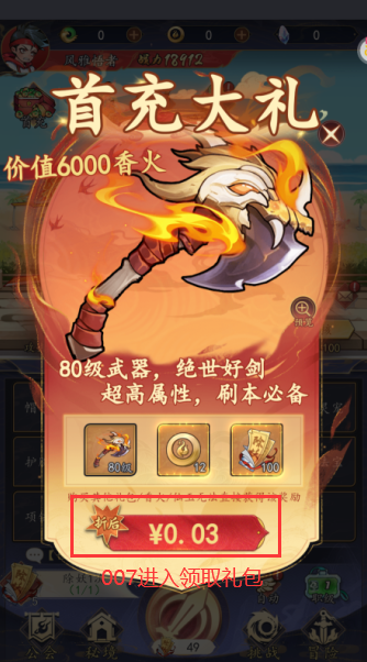 2. 进入游戏后,别忘了领取首充礼包,为你的冒险之旅增添助力。