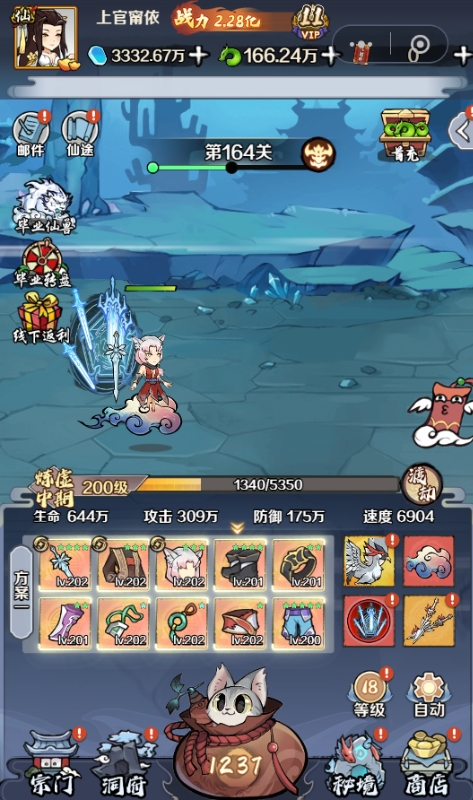 提升修仙者等级,可快速提高装备等级并开启更多玩法。